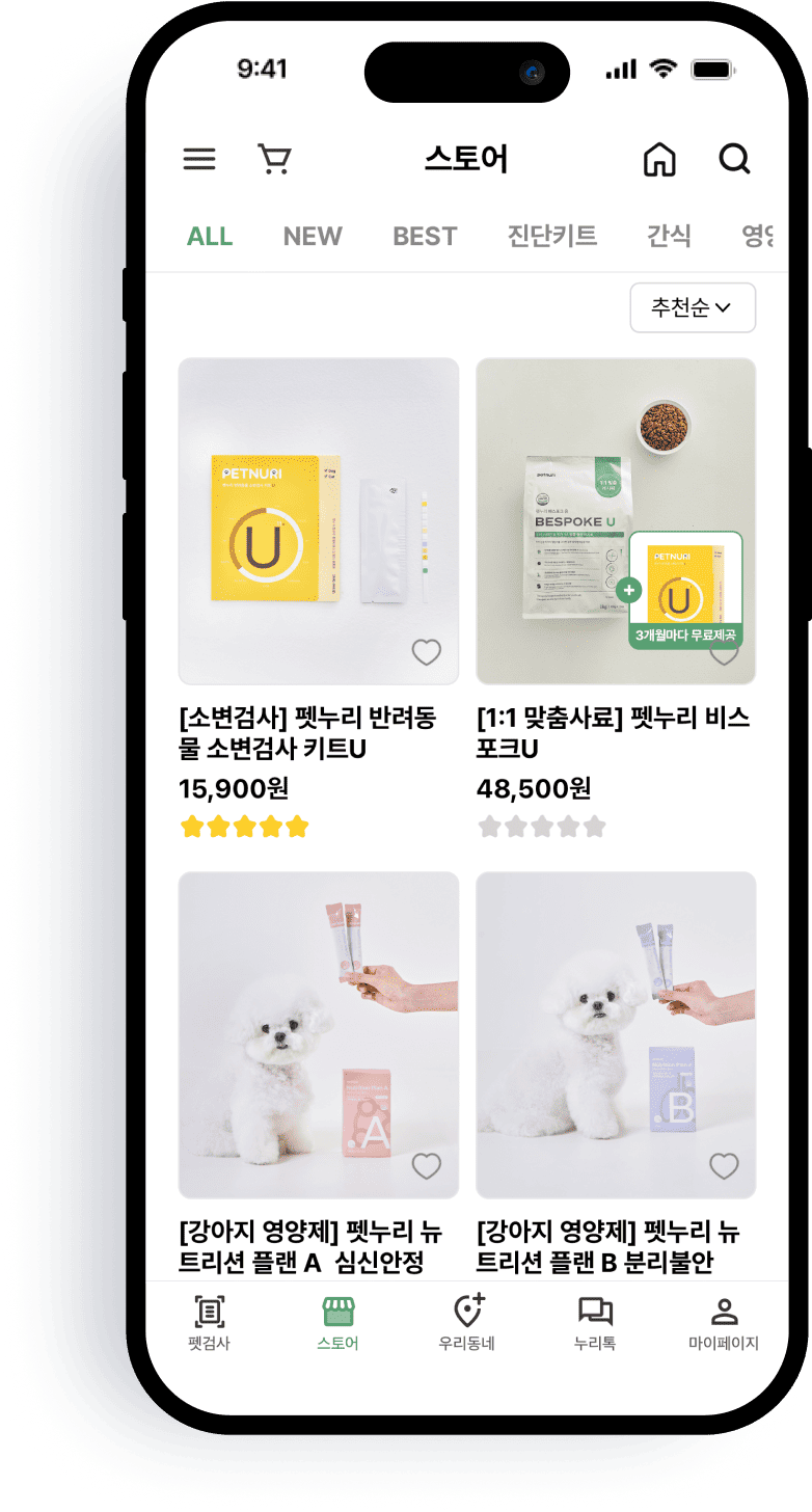 스토어에서소변검사, 맞춤사료, 맞춤영양제까지